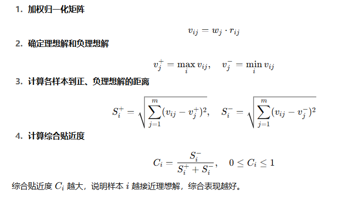 - TOPSIS(Technique for Order Preference by Similarity to Ideal Solution) 是一种常用的多指标综合评价方法。