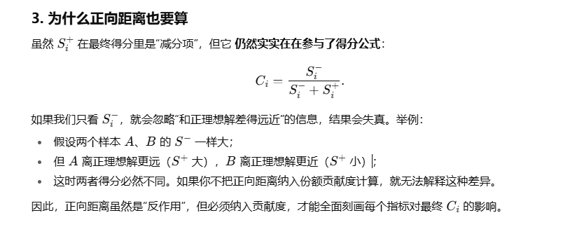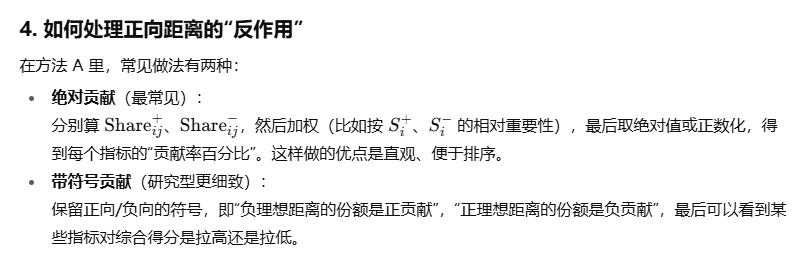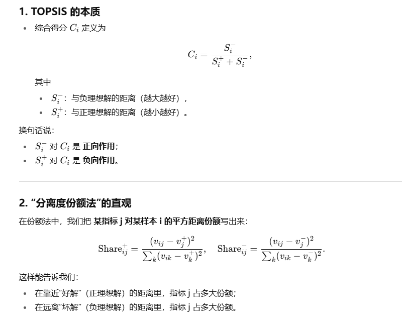 - 二者结合得到的 熵权 TOPSIS 法,能够同时保证权重分配的客观性和综合评价的合理性